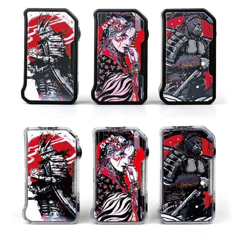 Dovpo M VV II Mechanical Mod must be known for its vivid and colorful pattern, which has classy craftwork, comfortable grip, versatile performance, and is portable to on-the-go use. Full of oriental exotic colors, such as Samurai, Geisha, and Ape, giving you the chance to venture on an exotic journey for vaping. Breaking through itself to explore more possibilities, it designs both a clear and black version for more choices. The box-size mod perfectly holds in your hand and is powered by a dual 18650 battery (not included), resulting in powerful support with a maximum 280W output, no matter whether you have the needs of DTL or MTL vaping. With such a high-end vape device, I recommend you to pick a sub-ohm tank for the DTL vaping experience, it must be popular among intermediate and advanced vapers. Of course, you can install any 510 atomizer tank and enliven your device via one button. Composed of PC and zinc alloy material, these high-performance potentiometer-based semi-mechanical mod sites are comfortable and ultra-portable, as well as robust construction.