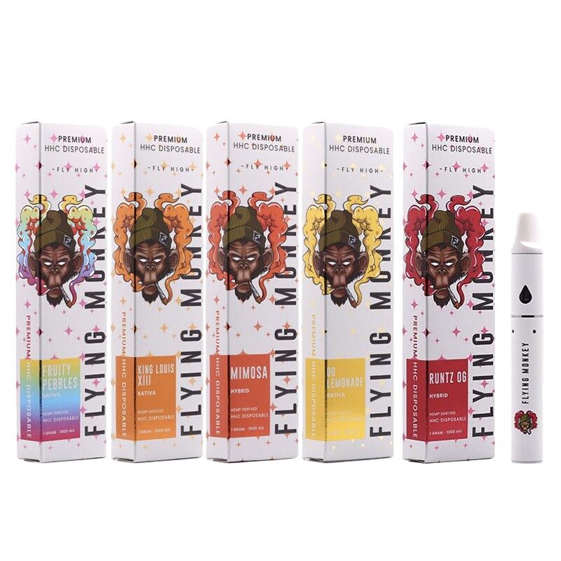 Flying Monkey HHC Disposable Vape features 1g(1000mg) HHC distillate, a built-in 400mAh battery, a draw-activated firing system, a ceramic coil, and an LED battery life indicator to focus on efficiency to provide an exceptional vaping experience with unique properties of HHC. The LED battery life indicator light keeps you informed about the remaining battery power. It undergoes thorough 3rd party lab testing to ensure the absence of fillers and maintains a Delta-9 THC level of less than 0.3%. This commitment to quality and purity allows you to indulge in the HHC concentrate with peace of mind.