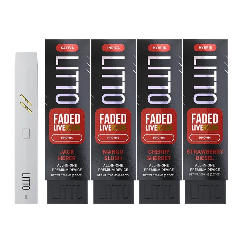 Litto Faded Live Resin HHC + H4 Vape comes with blend new strain called “Faded Blend” with 2g (2000mg) blended HHC and H4. Litto Faded Live Resin Vape provides vapers with an unforgettable and tranquil journey. You may enjoy the sweet ripe mango tastes and feel relaxed. Whether you are suffering from pressure because of work or other issues, one or two puffs will make a difference. And the nice fruity flavors make the vape more attractive. The flavor profiles of Litto Faded will gradually build as time passes.