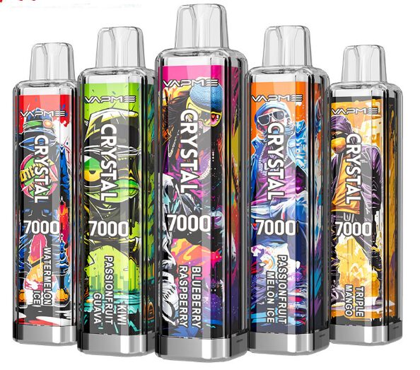 The VAPME CRYSTAL 7000 features a 14mL e-liquid capacity, 650mAh battery, 30 diverse flavors, a 1.0 ohm mesh coil, promising over 7000 puffs for a comprehensive and flavorful vaping journey.