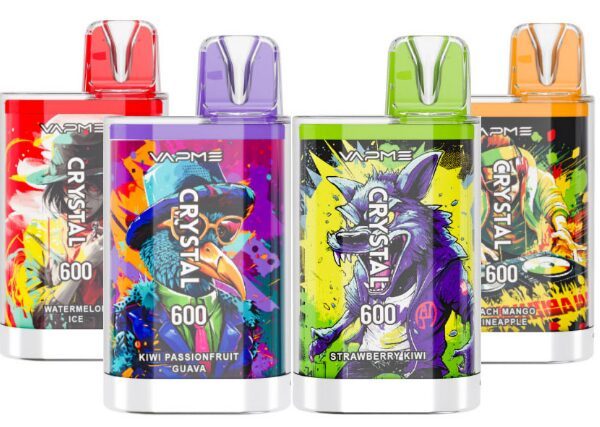 VAPME CRYSTAL 600 offers a 2mL e-liquid capacity, a 550mAh cobalt battery, 12 delightful flavors, and a 1.2 ohm mesh coil, designed for over 600 puffs of efficient and flavorful vaping.